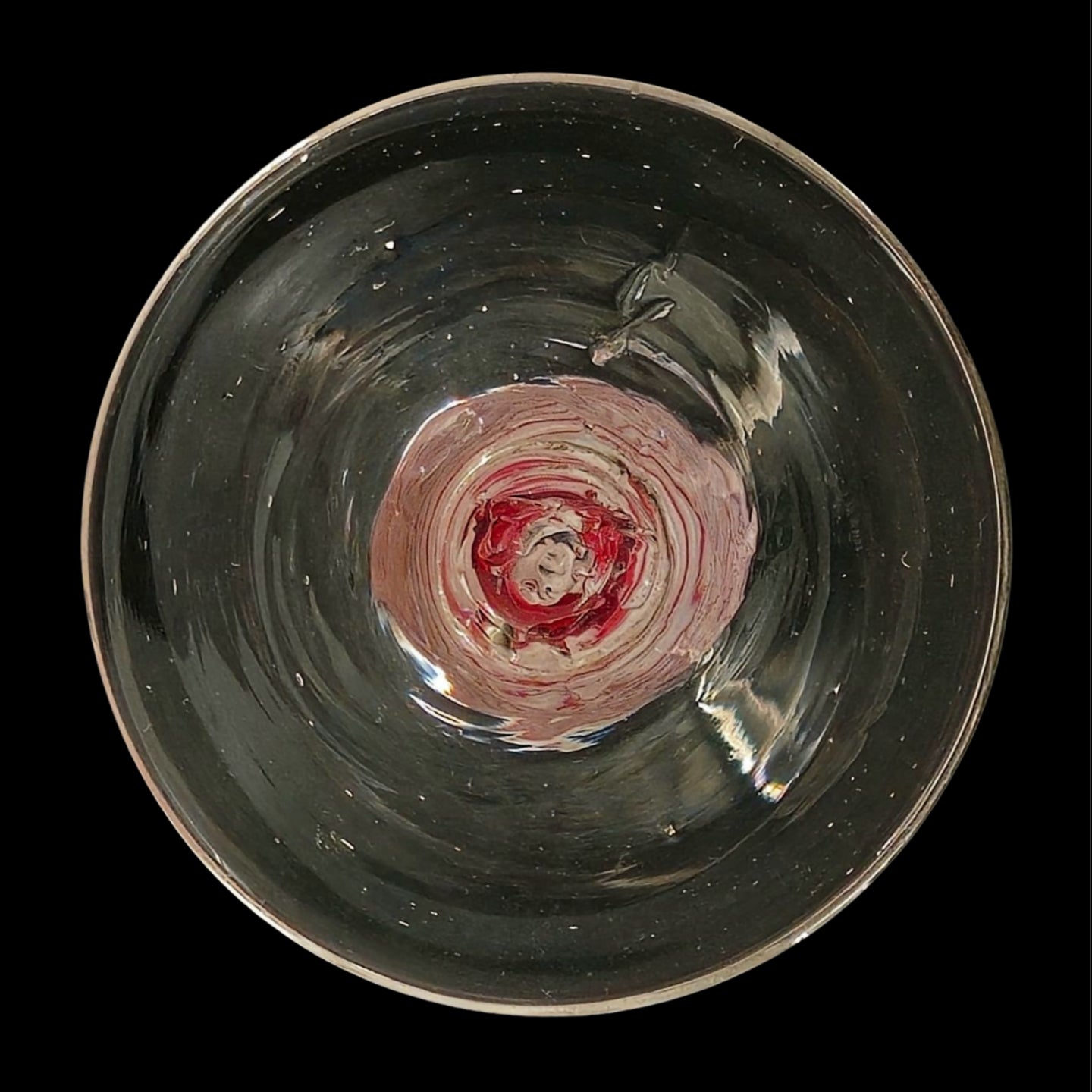 Of typical form with a red and white opaque twist around a white gauze core.