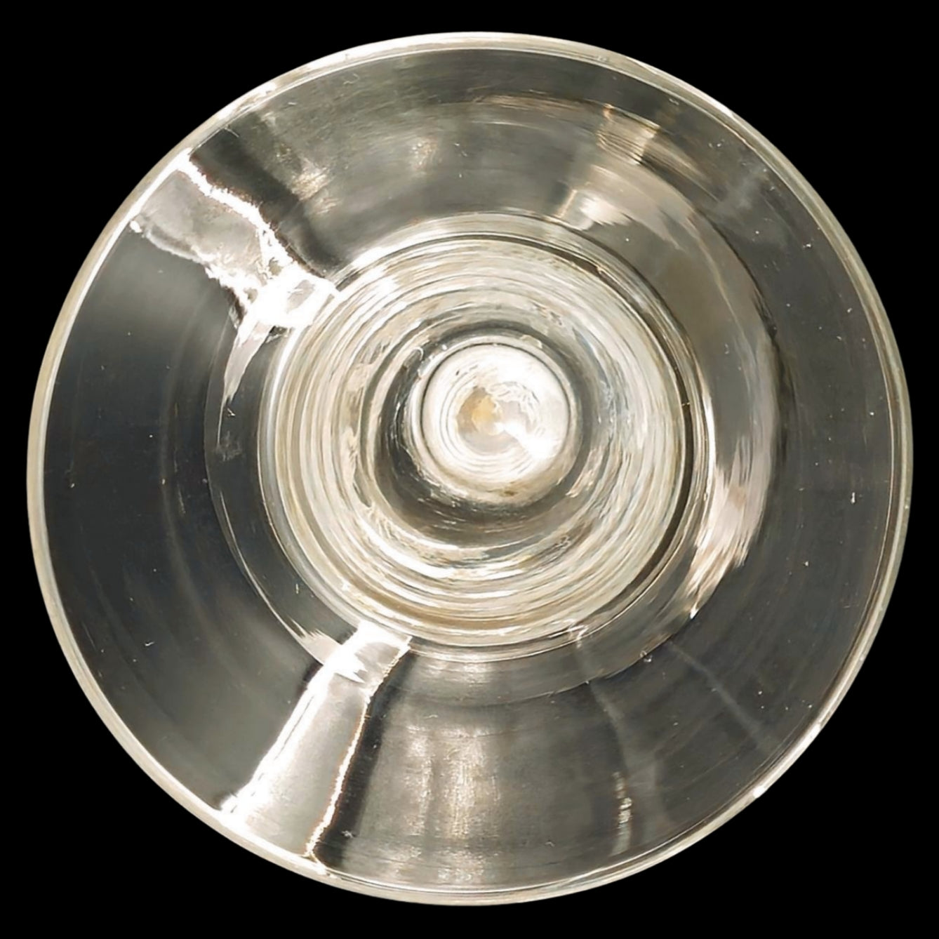 Pan-topped opaque-twist wine glass. It's thought that these were used to serve syllabub, a sweet made by using wine to curdle milk or cream.