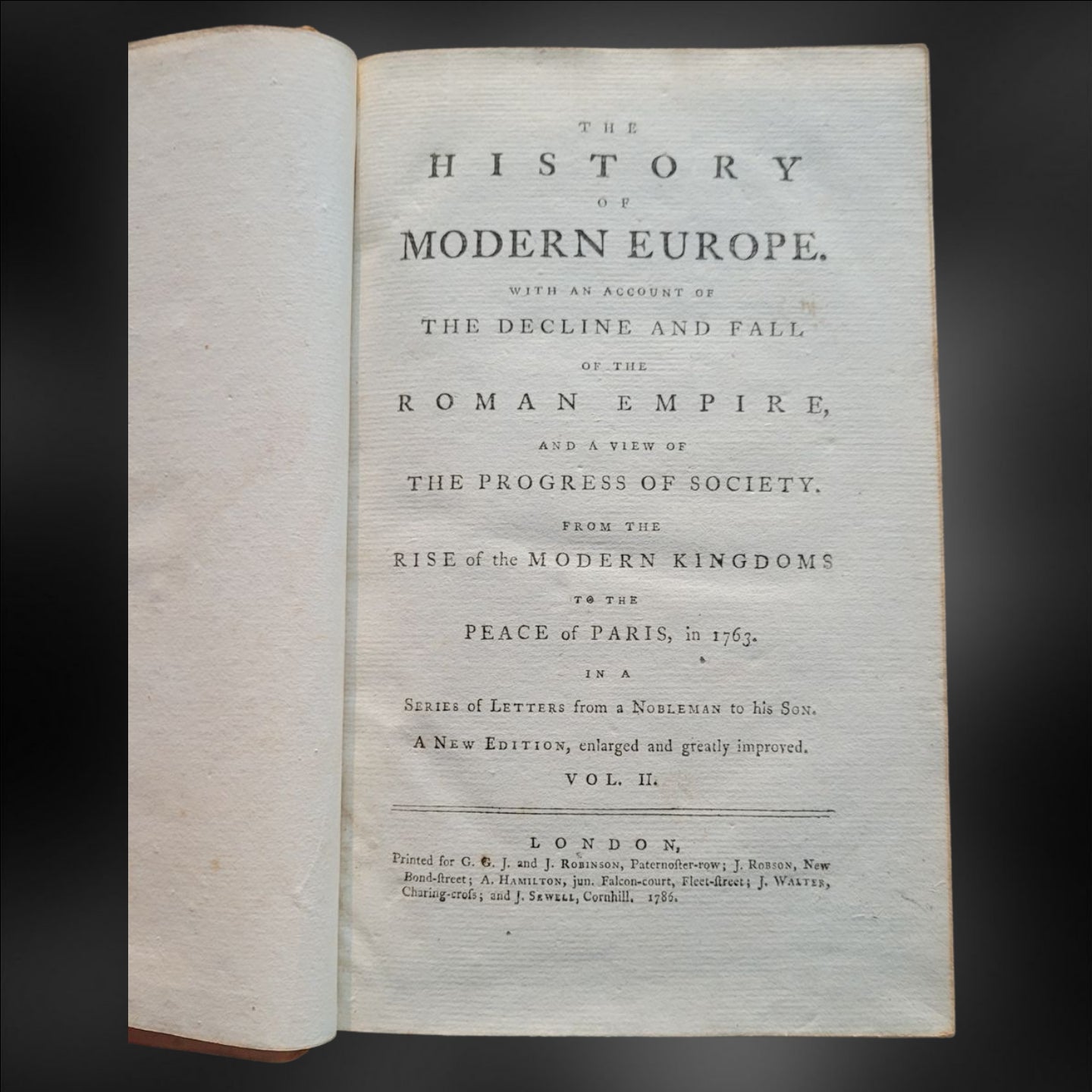 From the library of Josiah Wedgwood, Russell’s Modern Europe Vol II. Signature in full to fly-leaf.