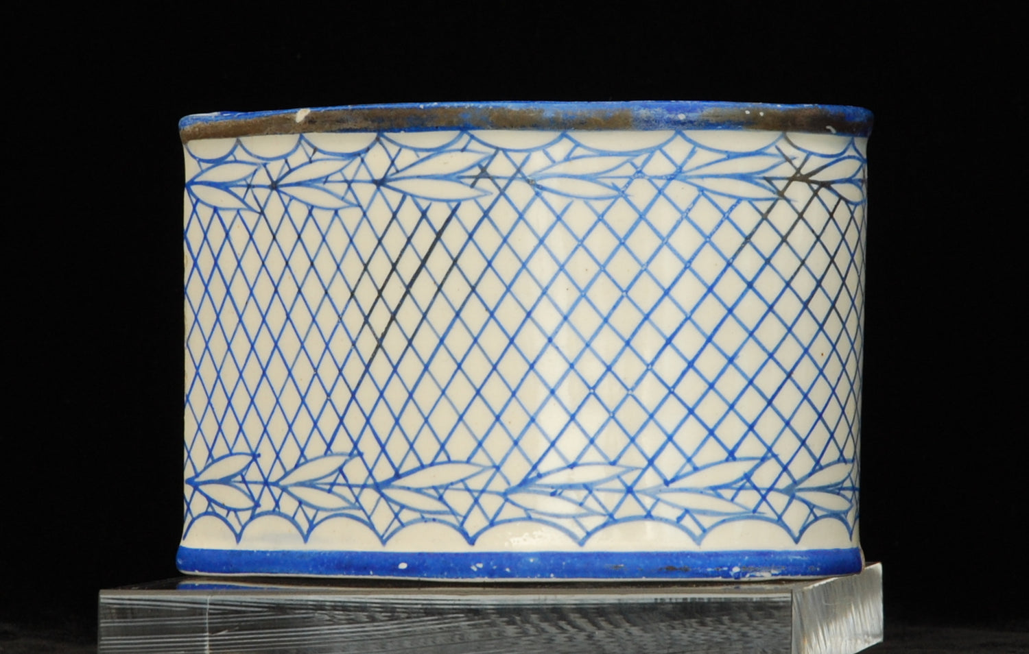 An unusual pearlware custard cup, painted to mimic the applied decoration usually found on stoneware examples.