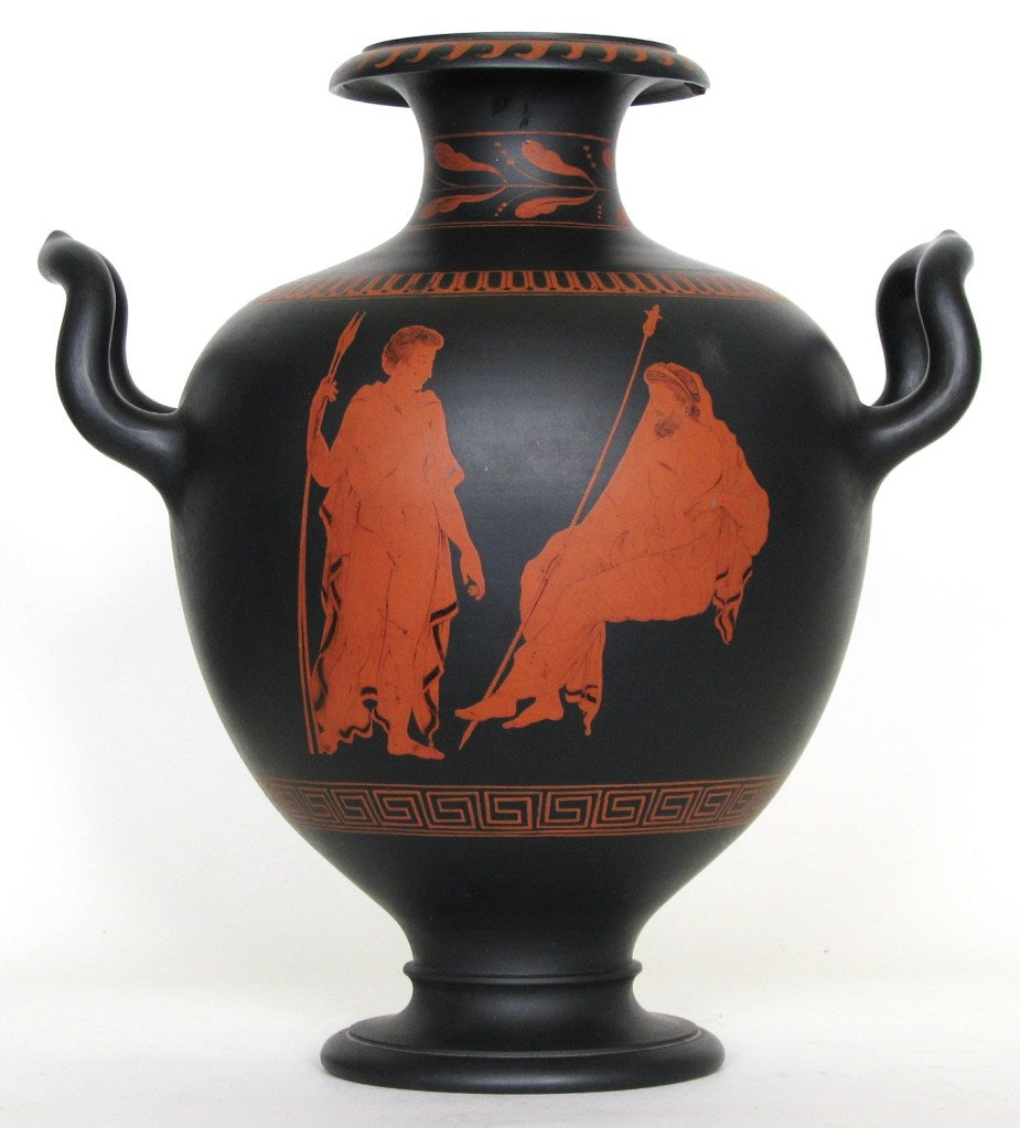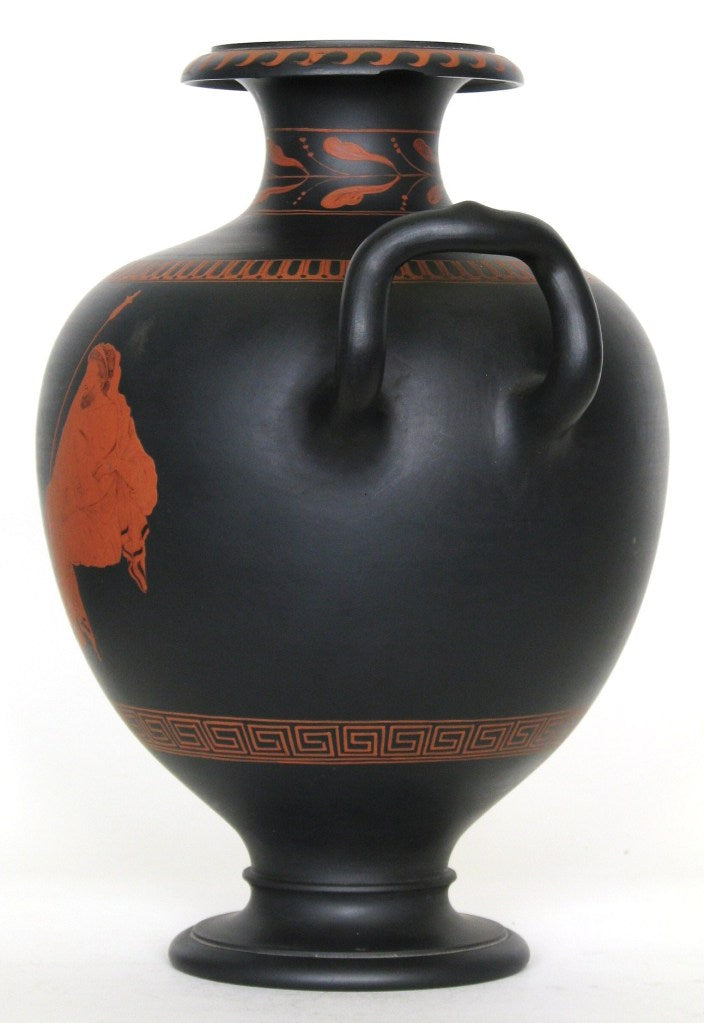 An early encaustic-painted vase in the Hydria shape. Made and fired as a single piece, rather than the later bolted technique.